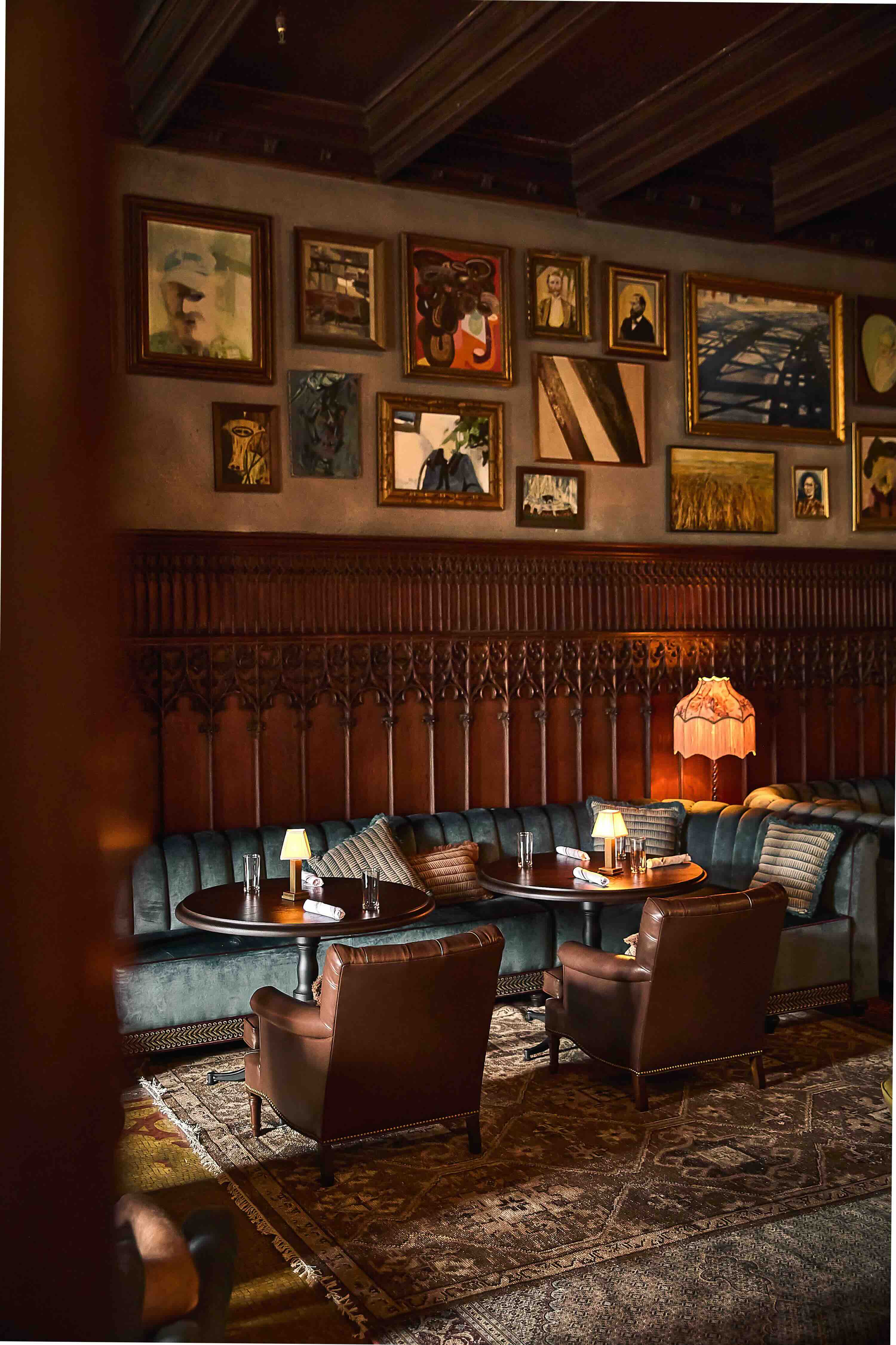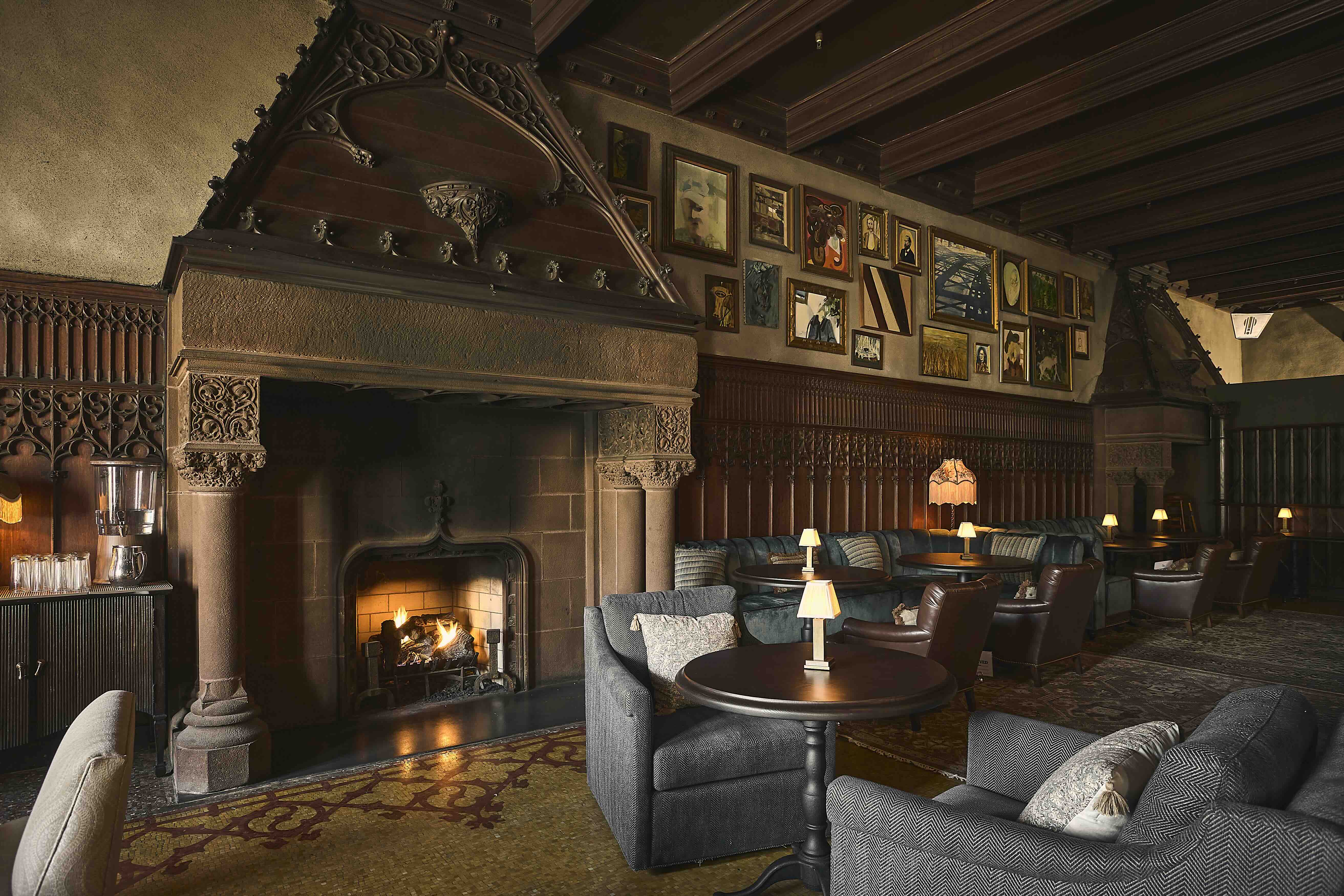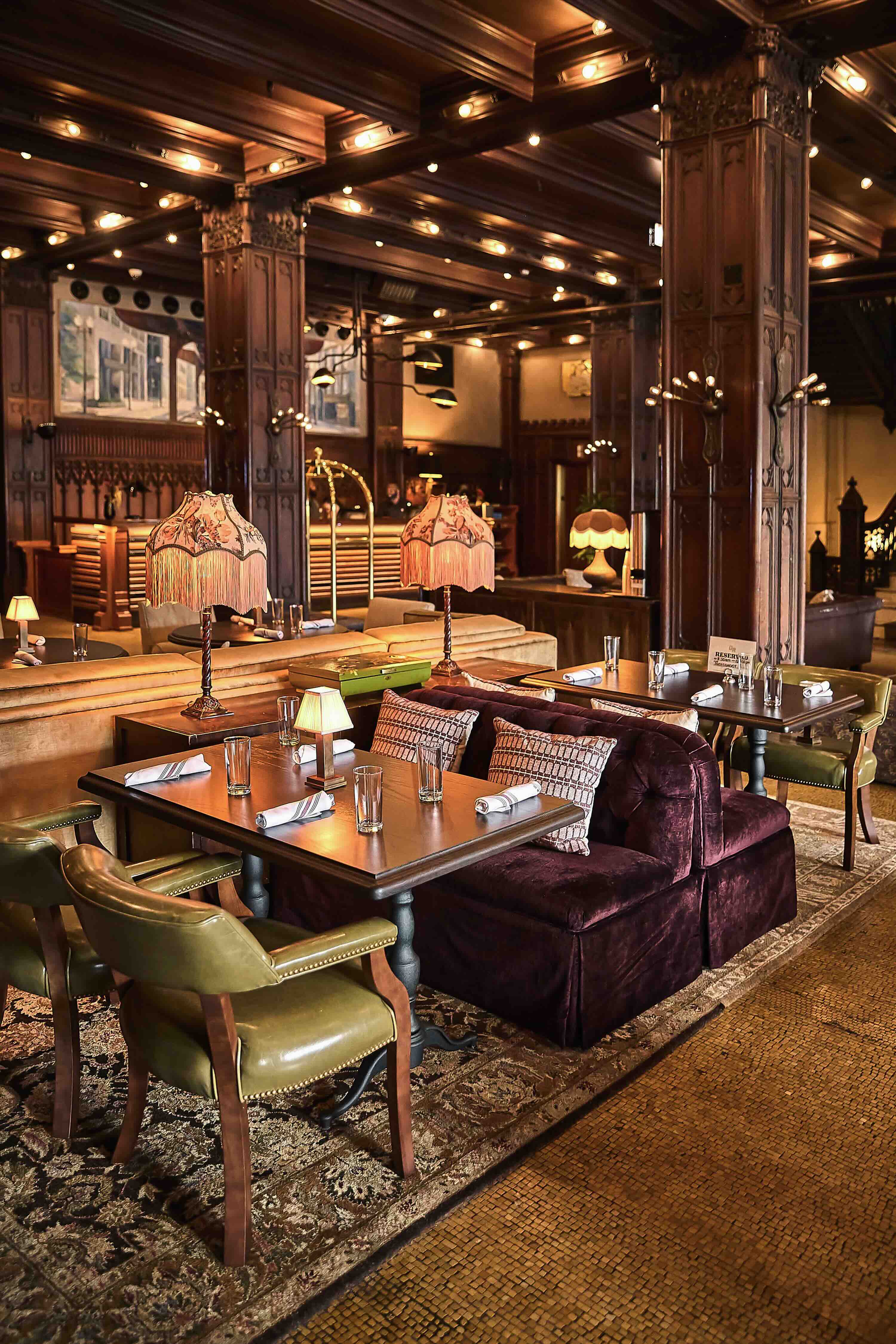 A beautiful, elegant space that is slightly elevated from the rest of the room and is separated by large, carved wooden pillars. The space has two grand fireplaces with surrounding cozy lounge seating and space for up to 60 guests reception style. Beyond its reception capabilities, the space also allows for family-style dinners for up to 30 guests in the adjoining Library. Though this is considered semi-private, this spaces feels intimate and removed from the rest of the room.